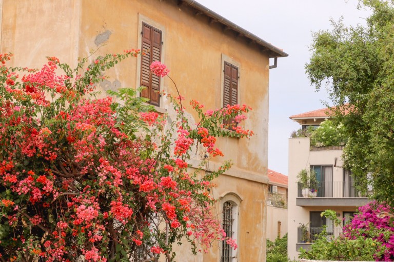 From here, we headed into Neve Tzedek, one of the oldest neighbourhoods in Tel Aviv, founded in 1887. These were narrow streets, filled with flowers and pretty houses. Really cool.