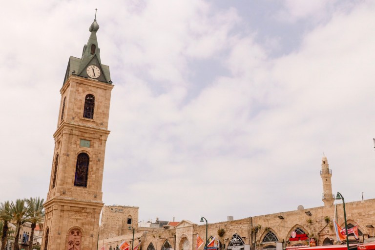 We were heading down into Jaffa. Jaffa is the oldest part of Tel Aviv and is an Arab area. There was a large colourful mosque and the 1903 clock tower.