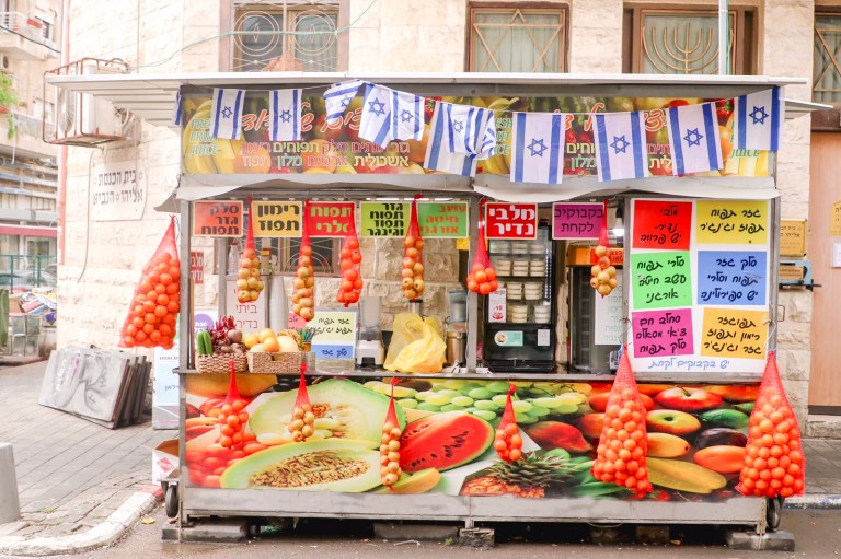 Carmel market is Tel Aviv’s busiest street market. It sells everything – fruits, vegetables, juice, spices, traveller baggy trousers, plastic stuff and fake everything (clothes, makeup etc). It was starting to get busy.