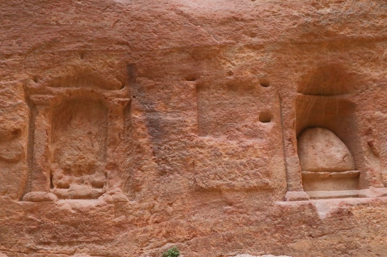 There are also various carvings throughout the length of the Siq. Most have been eroded to some extent. But you can still see the feet of people and camels.