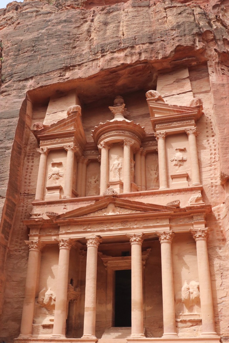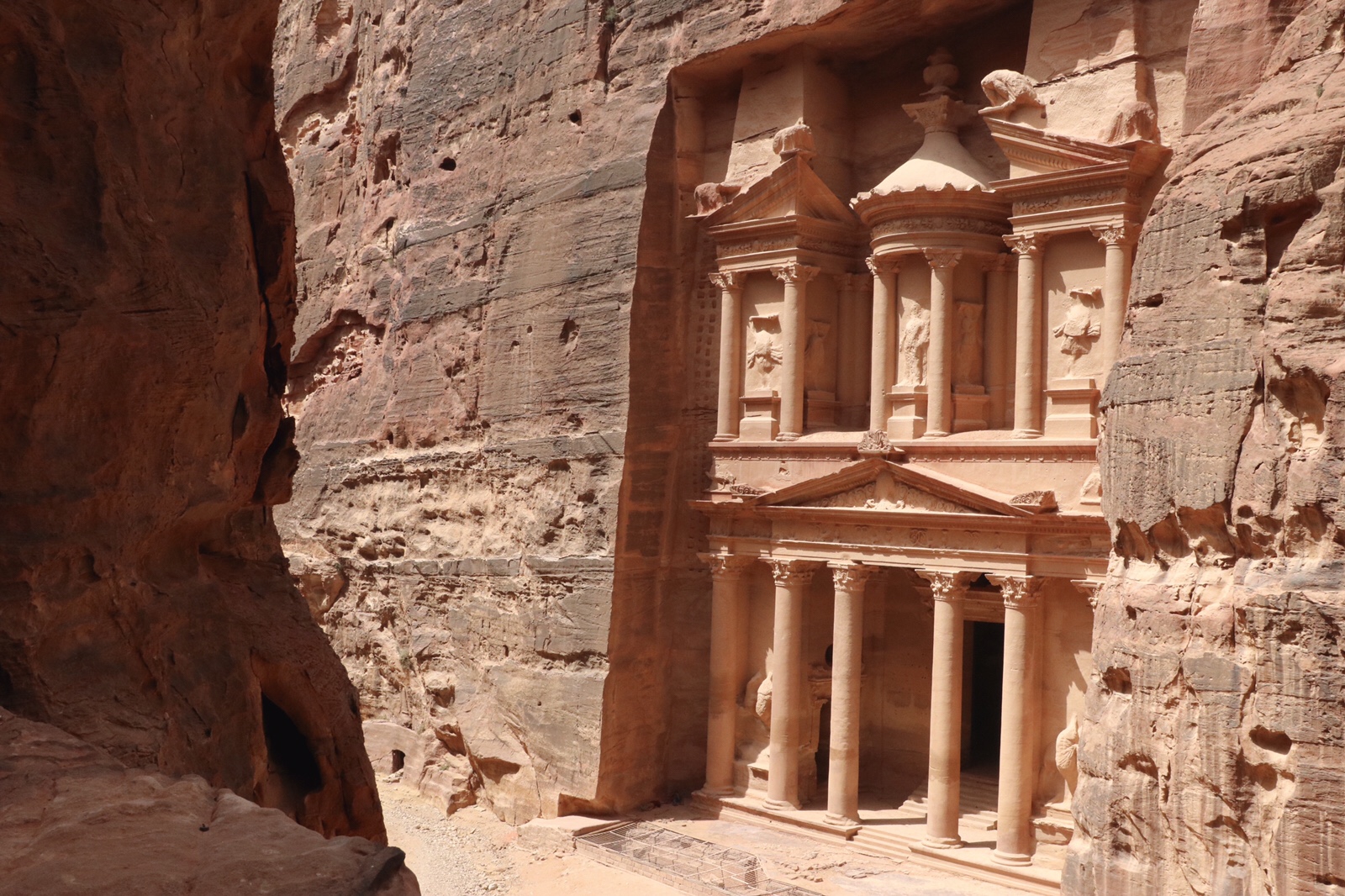 Towards the end of the crack, the Treasury comes into view. I knew that was going to happen, but I hadn’t realised we were at the end of the Siq already. So that was a surprise.
