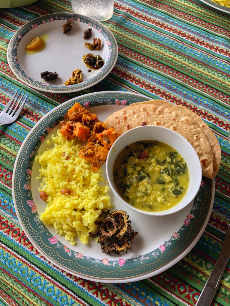 After around 30km of cycling (ok, so not too far!), it was time for lunch back at the house. They had made a feast – different vegetable curries, rice, chutnies, chapatti. It was so delicious.