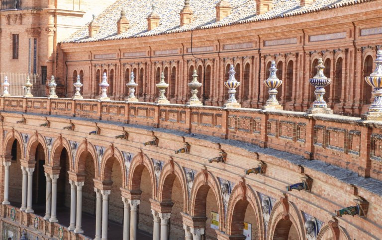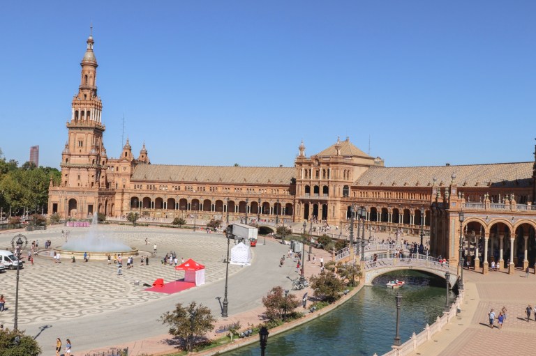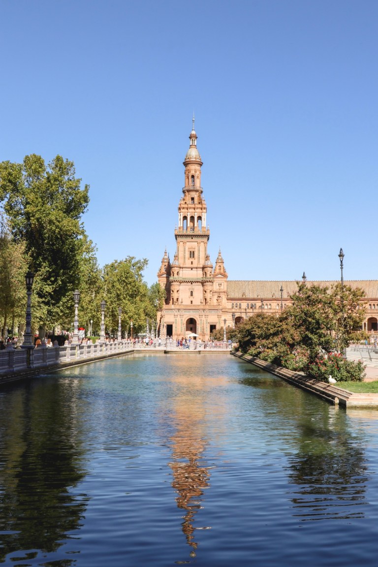 From here, we wandered heading South, past the university and towards the Plaza de Espana. In photos this place looks so out of place in a city centre – but in real life, it’s more of a park. A wide arching building, with a patio in front, and a small river-shaped lake that you can boat on. And is set within a large park.