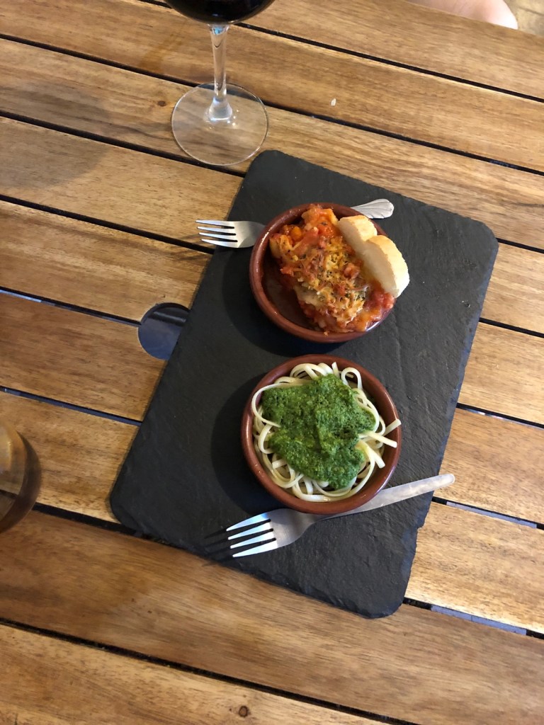 In the evening, we headed back out and to some tapas bars. You buy a drink (alcohol or non alcohol – for me!) and you get a free tapas plate with it! Obviously we made sure to go to vegan bars. We had a few – they were good! And some gelato – obviously!