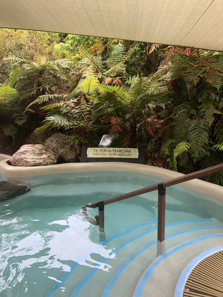 Then headed off the the hot pools. The water apparently comes from hot springs. They had three temperatures – 36, 38 and 40. The 40 felt really hot. But they were cool – set in the rainforest.
