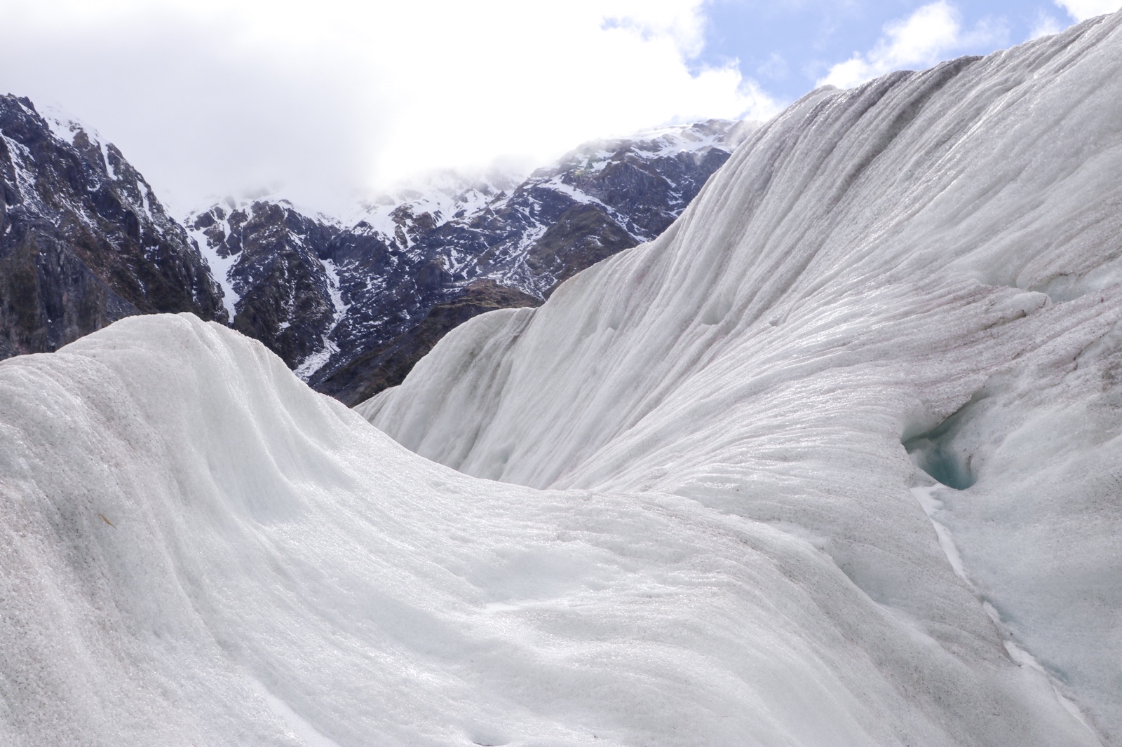 The glacier was formed during the last ice age – around 20,000 years ago. However, due to global warming the size is rapidly decreasing. You used to be able to walk from town up onto the glacier, but this is no longer possible as the glacier has retreated so far up into the mountains and too dangerous due to rock fall.
