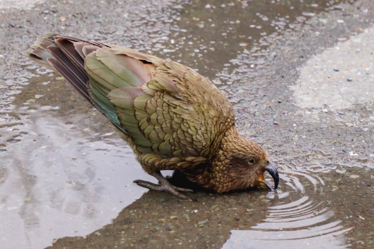 At one of the view point stops (the side of the road), there were some Kia birds – a native bird that has become quite clever. They steal everything. They were circling around people trying to grab things – one of them got some tobacco.