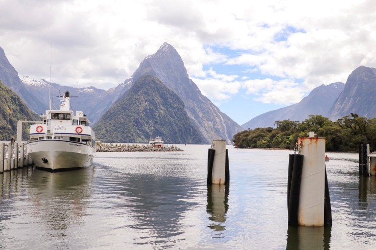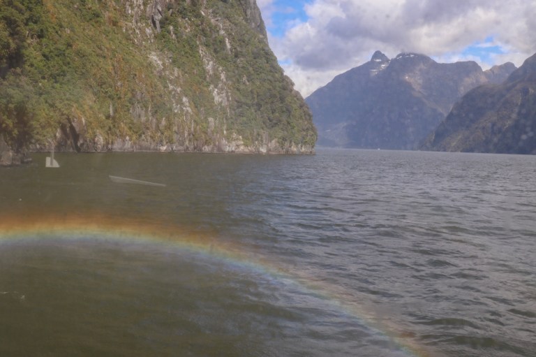 We got to Milford Sound at 2.30pm. Ready for a boat leaving at 2.45pm, for a sail around the fjord.