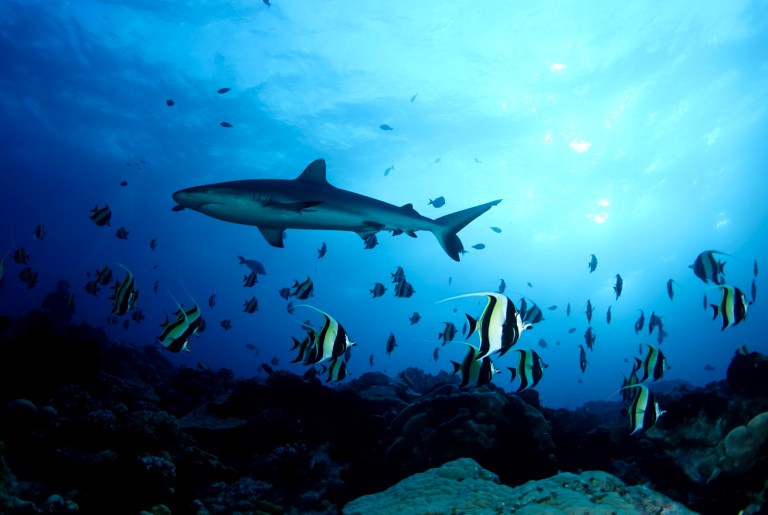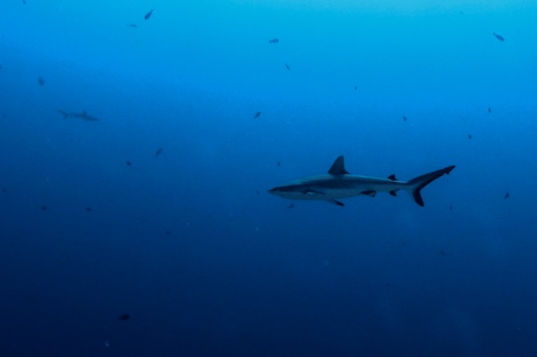 The diving here was similar. Strong current. Lots of schooling grey reefs. And a baby silver tip!