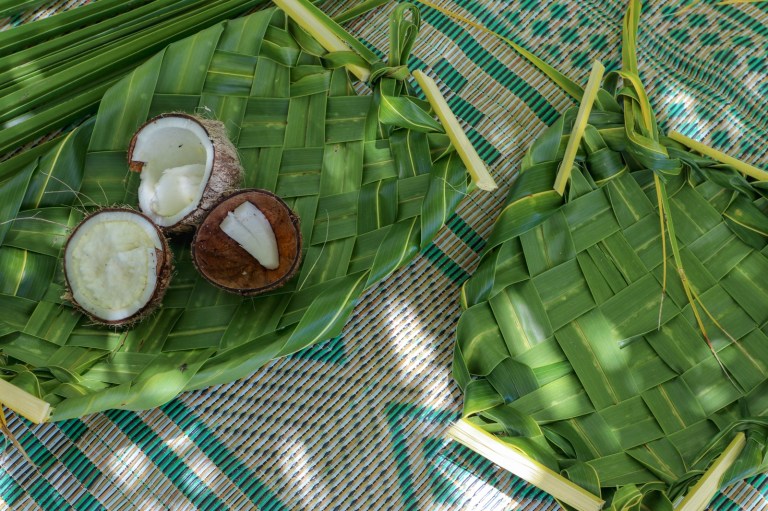 One of the local staff also showed us how to weave palm tree leaves! They do a lot of that here. We had a go at making baskets. I wasn’t too good at it.