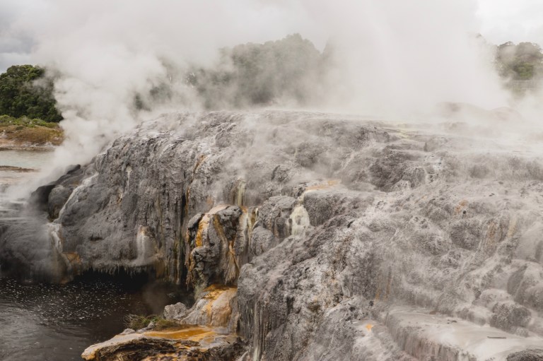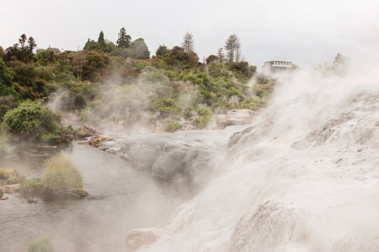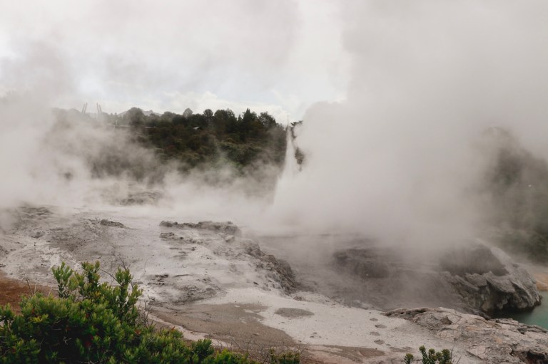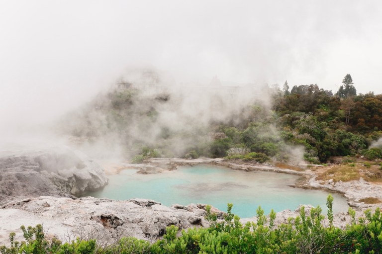 Rotorua is a geothermal area. Dotted around several places in the town was steam rising out of the ground. Including a fence which had started to burn!