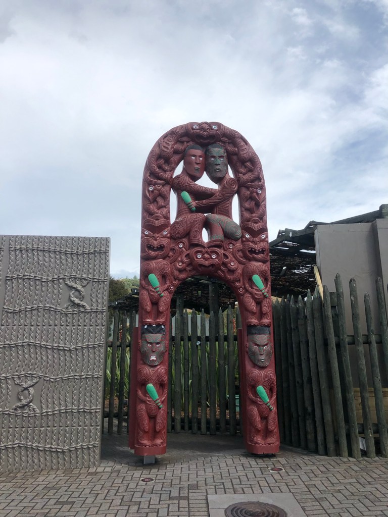 We headed to the Te Puia area. Here there are lots of geothermal features – a geyser, mud pools and sulfur lakes.