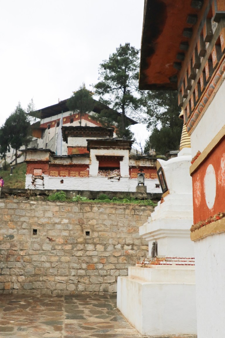 After lunch we went for a walk around and up to a nearby temple. Changangkha Lhakhang. Paths covered in prayer flags. And a temple building with prayer wheels circling. It was pretty.