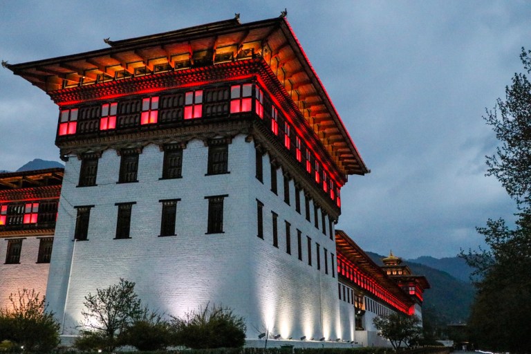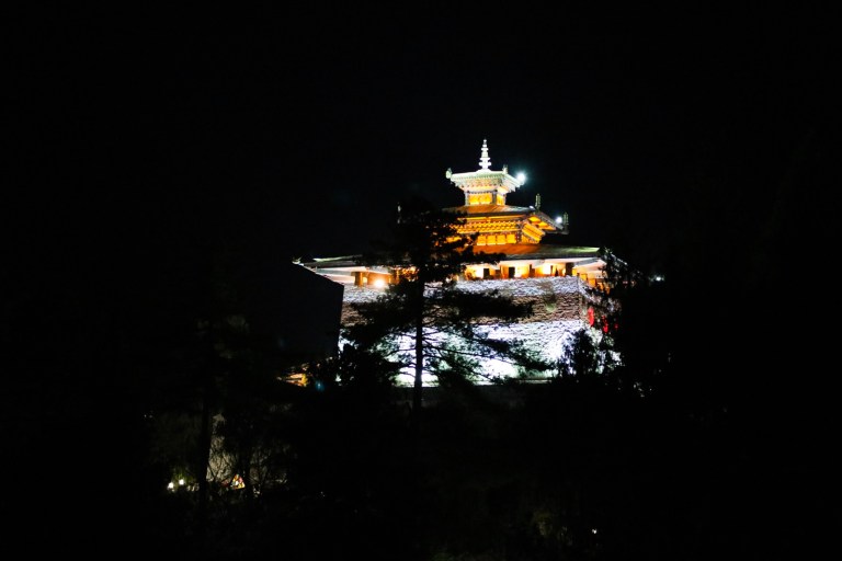 At 5pm we got ready to head to the Tashi Chhoe Dzong. A Dzong is a monastery and administration office together – a fort style monastery! It only opens to the public from 5.30pm, as during the day it is the administrative office of the king. It is also the summer residence of the monastic body (with winter being spent in Punakha).