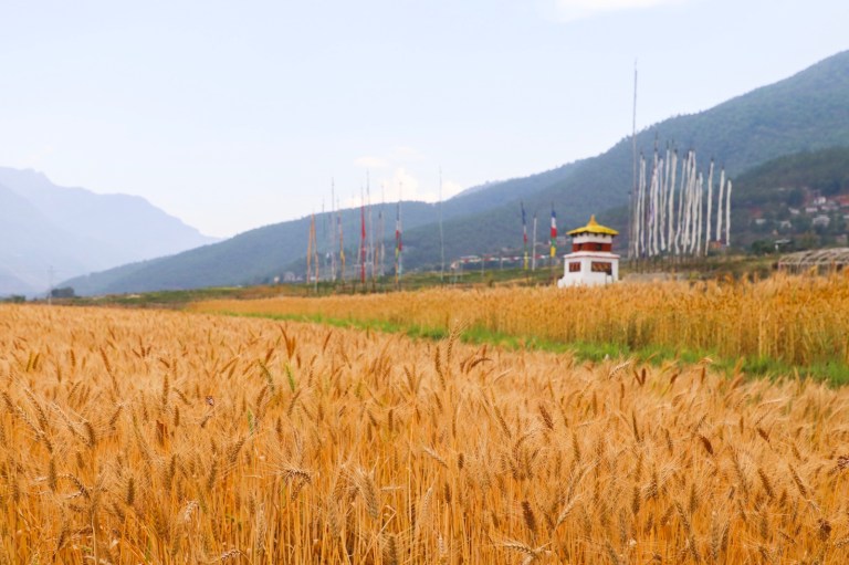 We are staying in Punakha for the next couple of days. We went for a walk through one of the villages. Again, through farmland and past a small stream with a waterwheel attached to a prayer wheel.