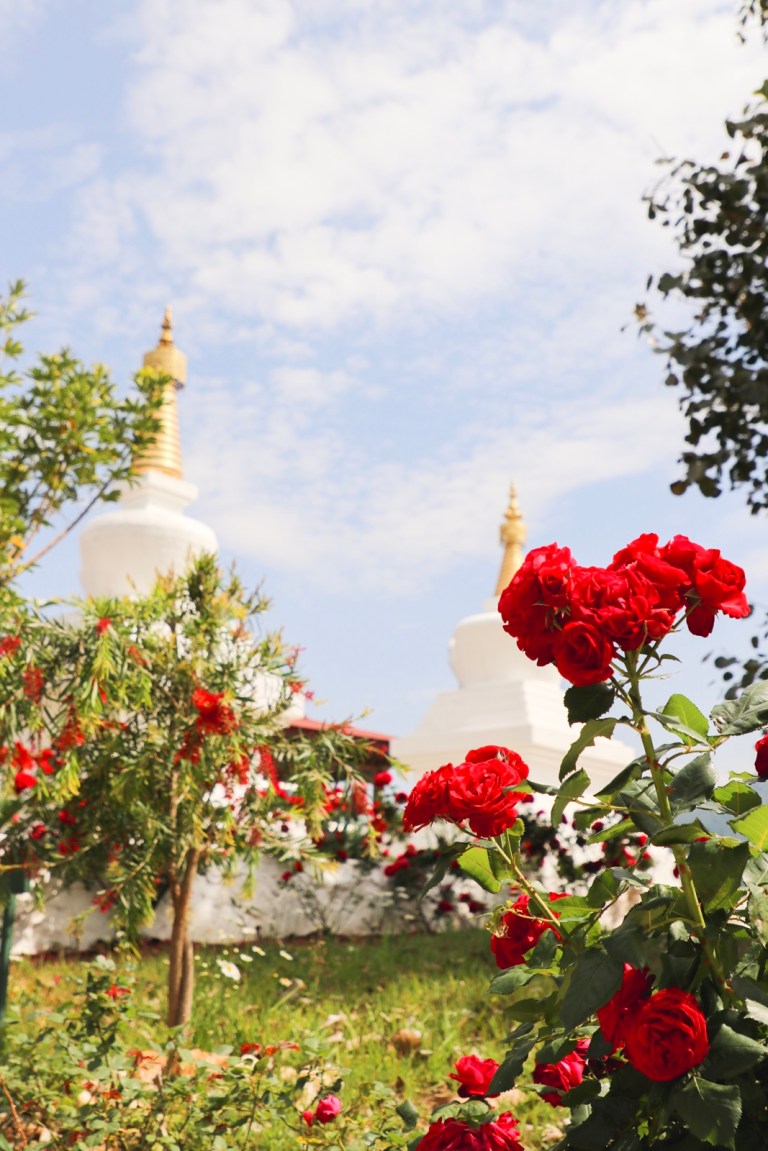 At the top was a beautiful garden, full of stupas, a large prayer wheel and flowers, along with the 30m tall chorten.