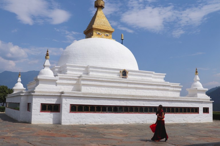 Next up, a nunnery. I don’t know if I’ve ever visited a nunnery before. This is the Sangchen Dorji Lhendrub Choling Nunnery and was only started around 9 years ago. It is a Buddhist college for 120 nuns. There is a Nepali-style chorten (stupa) up here too, complete with eyes!