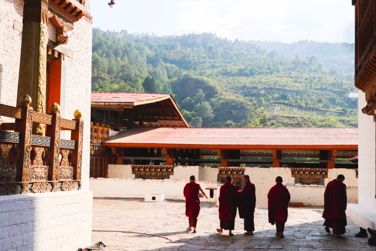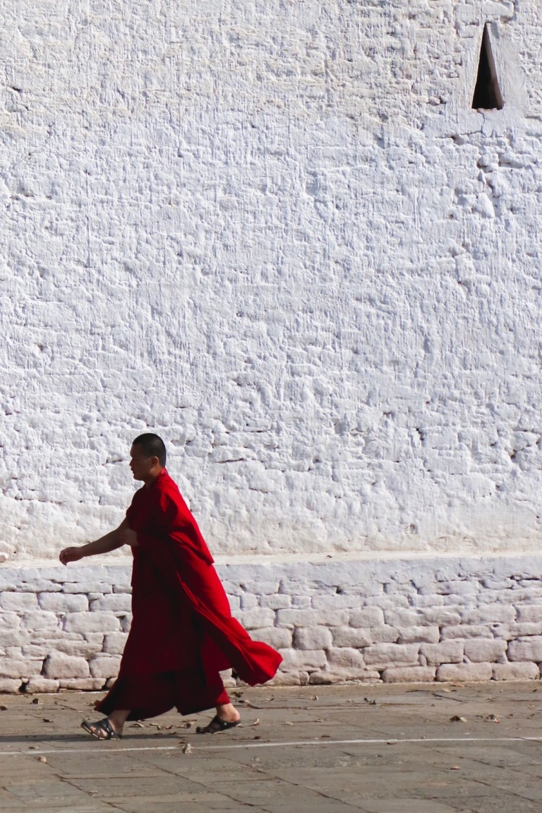 We couldn’t enter for a while as the monks had not finished chanting, so watched the courtyard from above. The courtyard was very busy with tourists. Mostly Indians, who do not pay the $250 daily tariff. And as soon as the monks started to file out of the hall, the Indians started crowding and shoving to get inside. It was quite a sight and really very inappropriate.