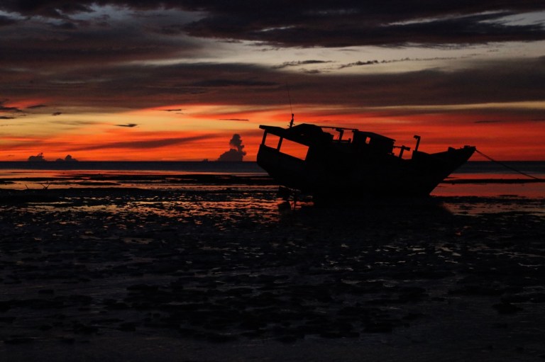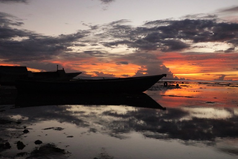 The sunset was amazing though. I headed back onto the beach to watch. The sea was at low tide, creating tide pools all along, with boats stranded on the sand.