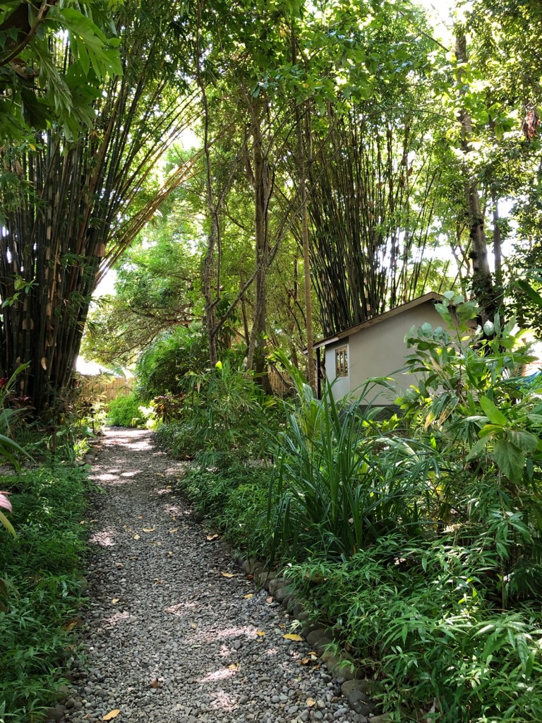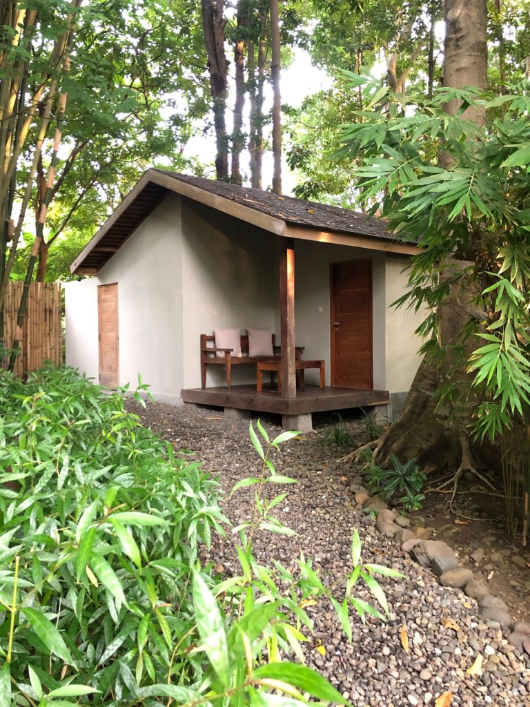 I have my own jungle bungalow with an outdoor bathroom. It’s cute.