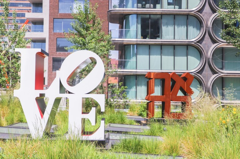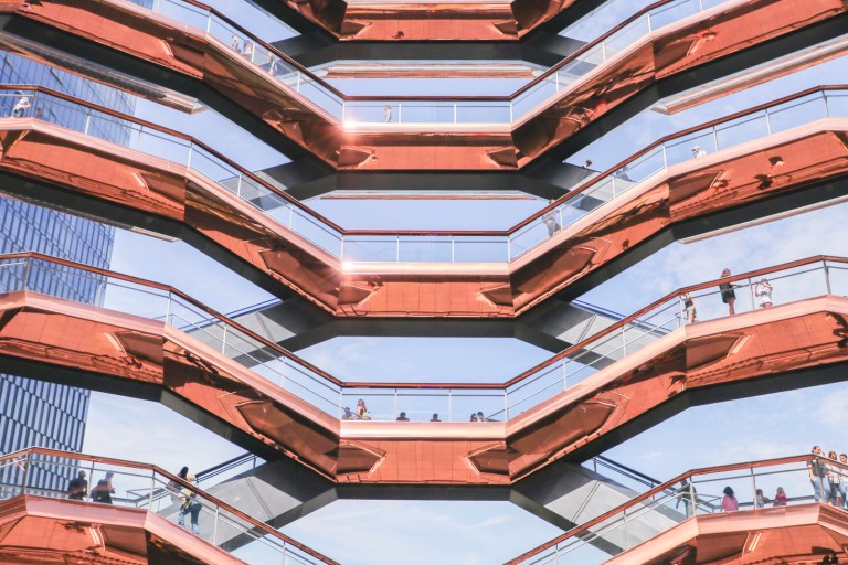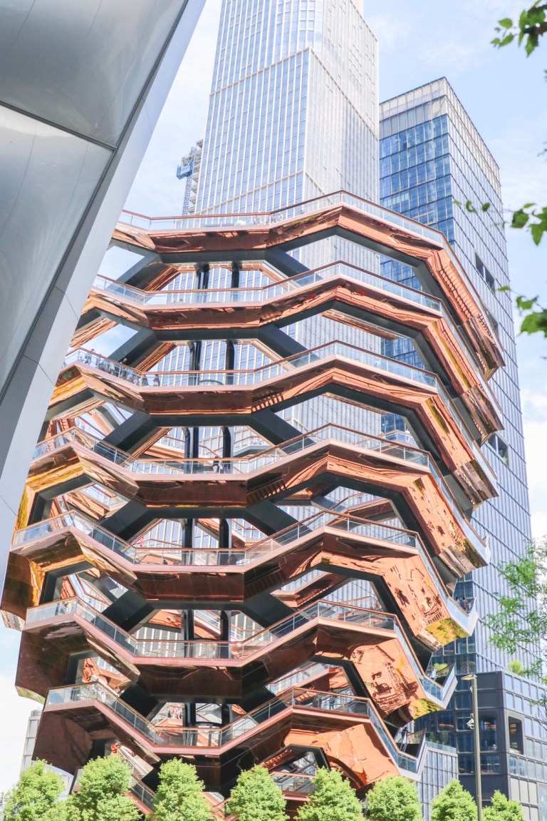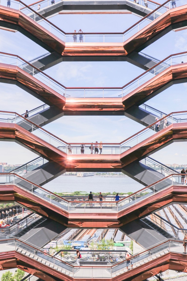 The vessel is located right at the end of the High Line. The High Line is an overground walkway which has been built on a disused railway line, and filled with look out points, sculptures and flowers.