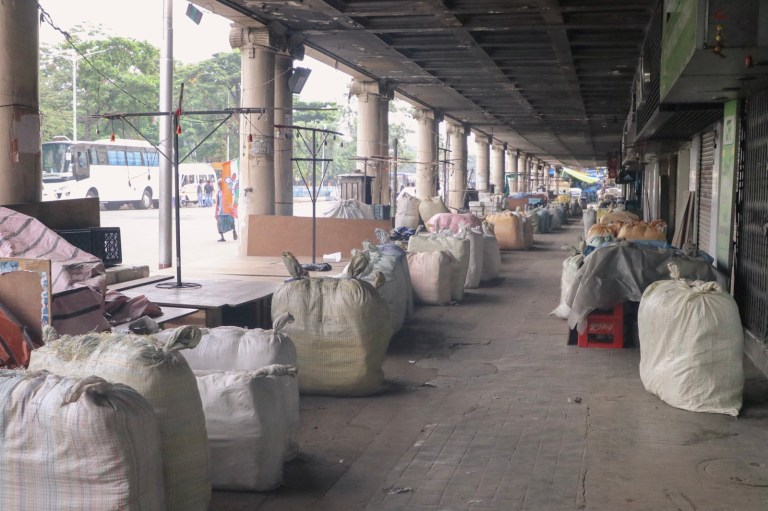 I left at 7am. And outside was deserted. All the market stalls pack themselves up every evening! All that was left was neatly packaged sacks, lining the street. What a lot of effort!