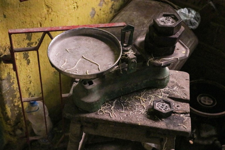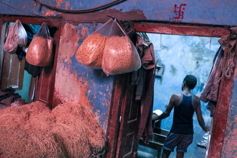 We went inside an old dark building, which looked like a house. Inside was totally unexpected -a noodle factory! Men rolling out sheets and cutting them into noodles! Not what you expect to find in India.