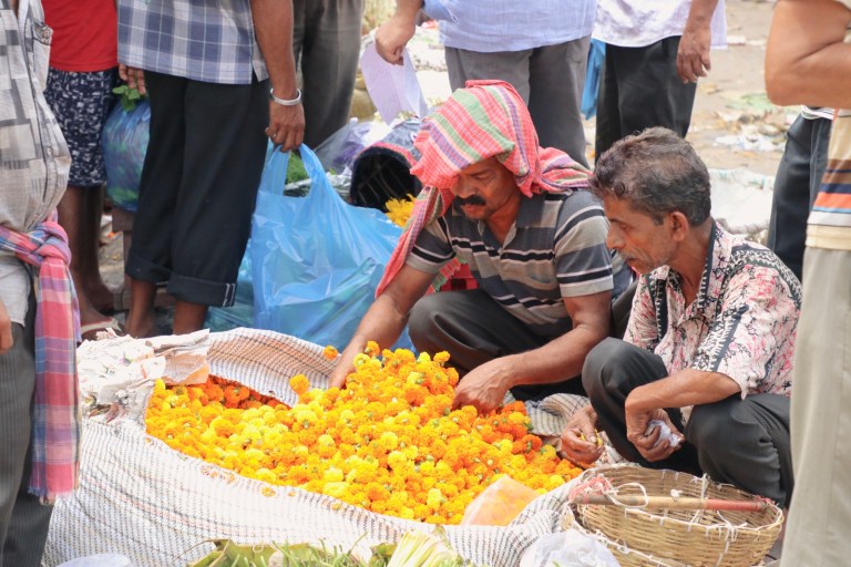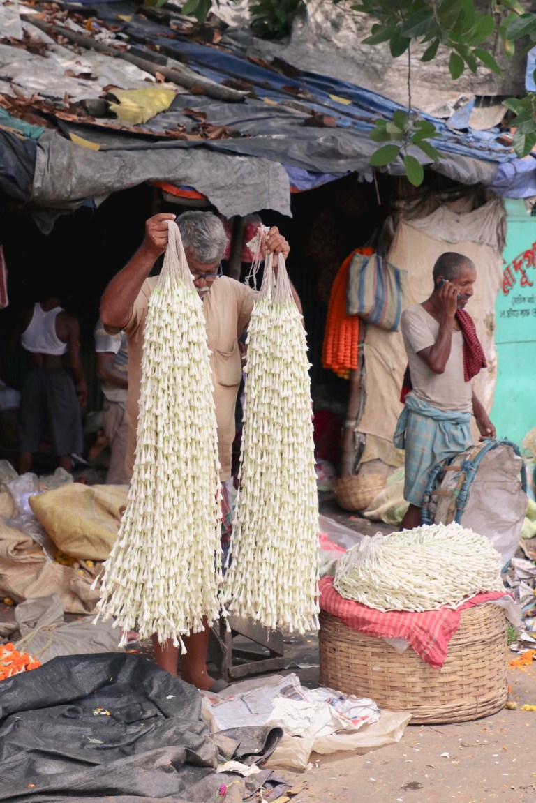 I made it to the Mullik Ghat Flower market. A colourful explosion of chaos. Flowers lining the streets and floor. Most of the market is a wholesale market, but at the edges are individuals selling small amounts of flowers.