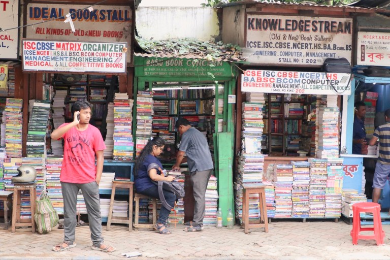 It took me a long time to find an Uber. And 20 minutes later, we were at College Street. This is where the University and several schools are based. The surrounding streets are completely filled with book stalls and shops. I’ve seen similar ones in Madurai before, but nowhere near as crazy as this. Hundreds of stalls, each selling hundreds of books. Some new. Some second hand. And some clearly photocopied fakes.