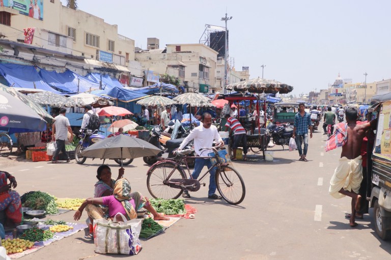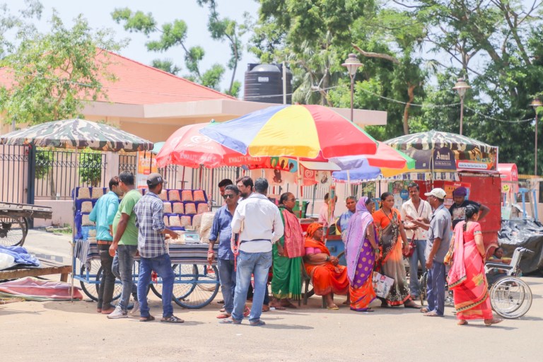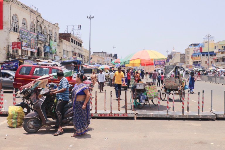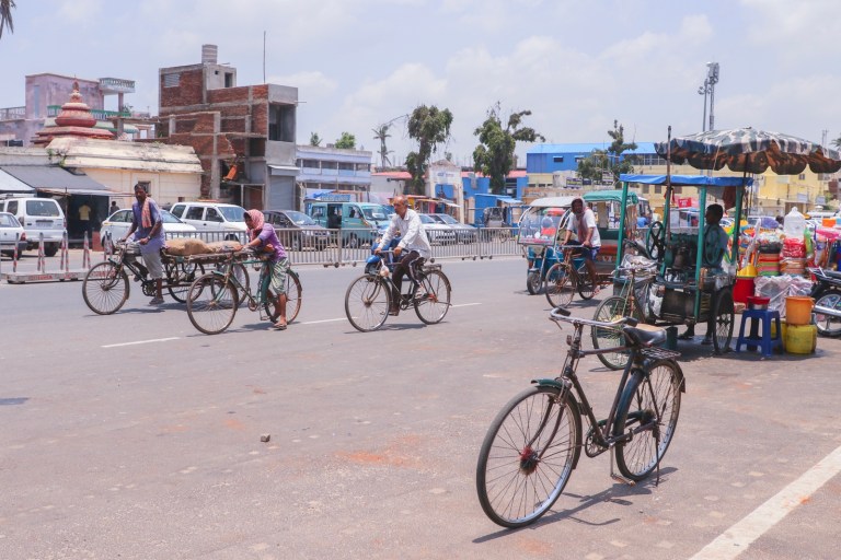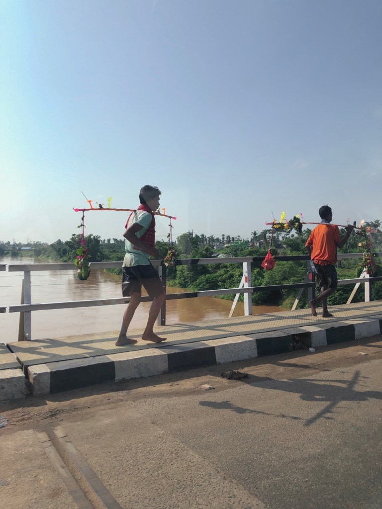 Along the main road were lots of pilgrims – walking 120km to Puri. They were each carrying a pole, with bowls of water on each end. And no shoes. It was already over 30 degrees! There were various rest points that had sprung up at the side of the road, where the pilgrims could balance their poles and eat/sleep.