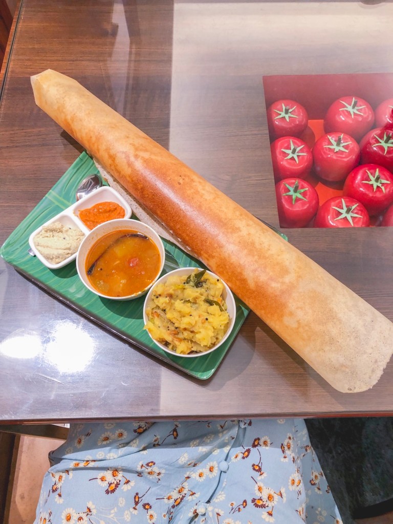 We got back around 2pm. I hadn’t eaten all day, so went to a snack restaurant. Despite being in north India, I got South Indian food – a paper dosa. It was rather massive! And I got some vegan Indian sweets – made from cashew and sugar.