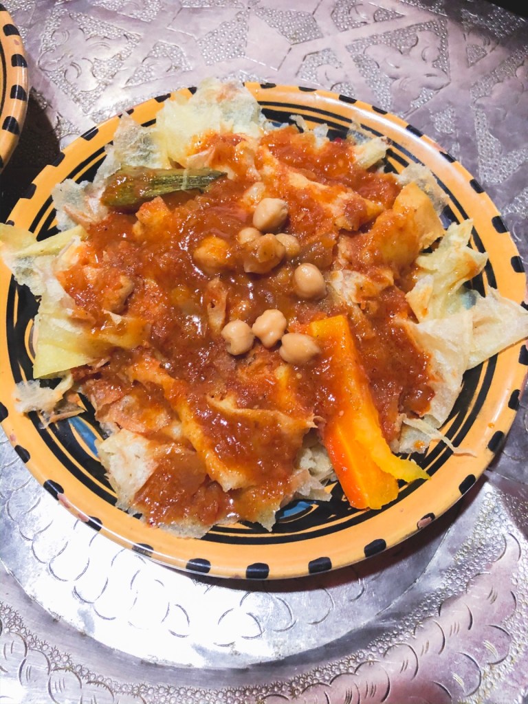 Surprisingly there is local food that is vegan. And that’s what we had! A flat bread type thing (the guy said squashed pasta) covered in tomato sauce, with chickpeas and vegetables. It was good.