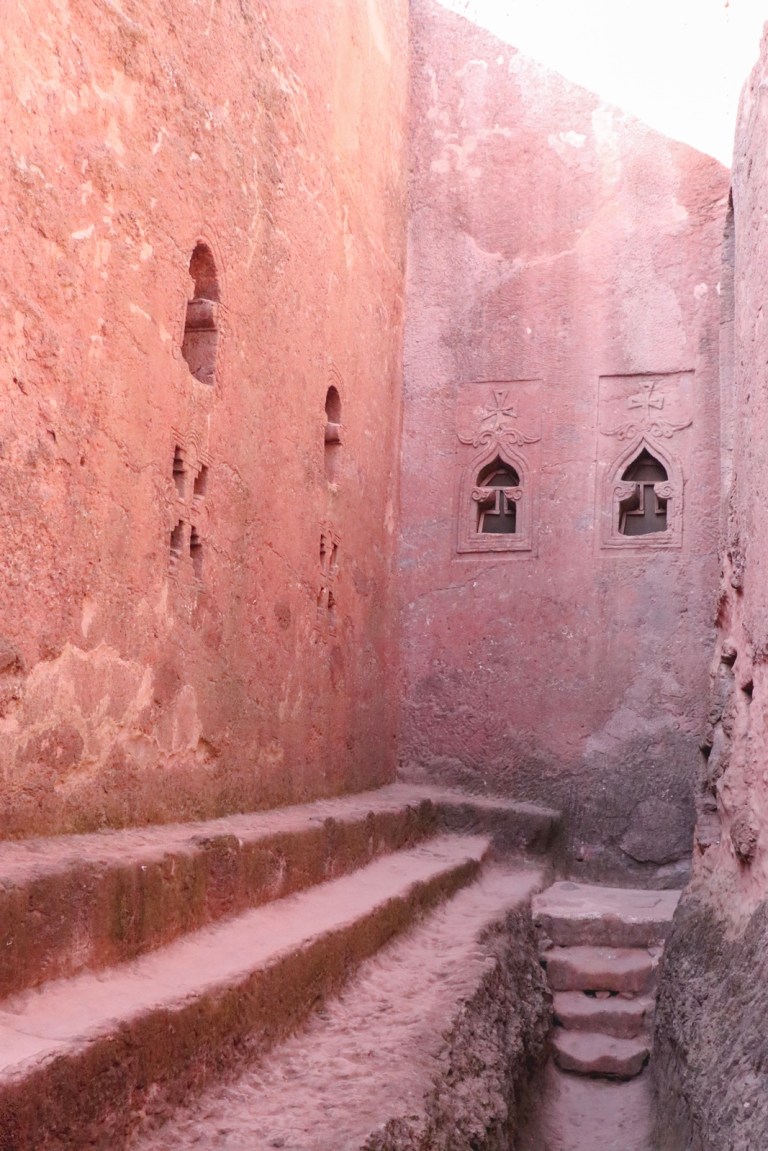 The last church was Bet Abba Libanos, which has similarities to the Petra monastery. Pink rock. Carved exterior and still attached to the main rock at the top. There is a legend that this one was built by Lalibela’s wife (Meskel Kebra) with help from angels in 24 hours…