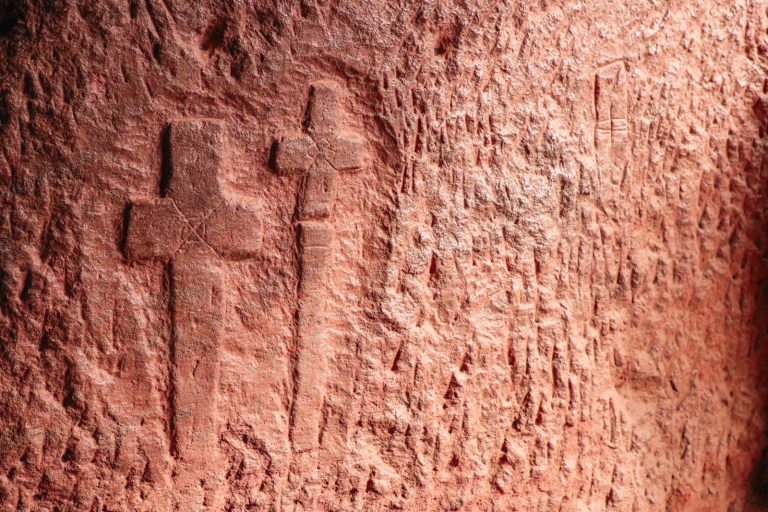 These churches have been carved from ground level downwards. Complete with supporting columns (although some here have been restored) and decorative windows in the shape of various different types of crosses. These are 800 years old – which is rather insane.