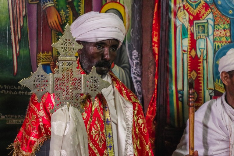 They are all still used as real churches. Today being Sunday, the original lalibela cross was out for viewing – apparently weighing 7kg and made of solid gold. The priest was holding it for anyone who wanted to see it – or be blessed by it.