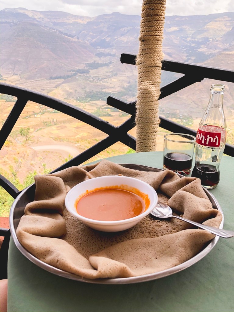 Time for lunch. And my first Ethiopian food! I ordered ‘fasting food’, which is always vegan. Lots of different vegetables and lentil curry on an injera – which is a ferment tef pancake. All so good. The injera tastes like a lemon pancake.