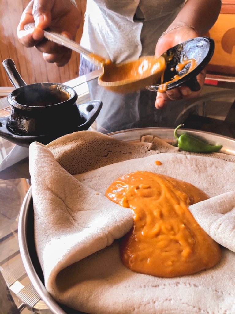 The airport was small, but had a small cafe – so I managed to get some food! Hadn’t eaten yet today. Had shiro with injera again and it was really good.