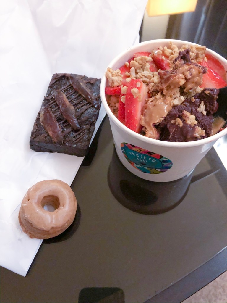 I got an Uber to my hotel – it wasn’t far, as I’m staying in the area of Deira. And ordered Uber eats delivery – real vegan food! I haven’t had dessert for 3 weeks. So açai, brownie and a mini donut…!