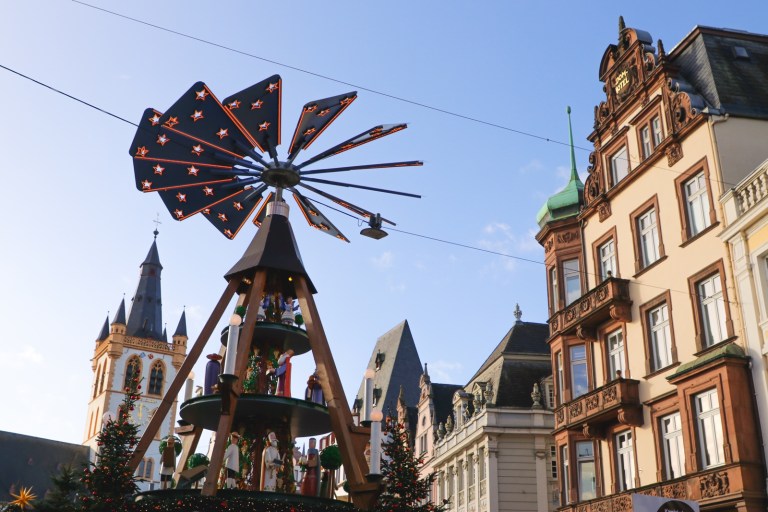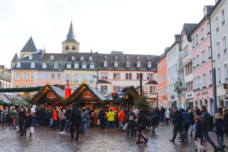 Trier is one of the oldest Germany cities, and has a very old Christmas market. It was very busy! But pretty cool – lots of food, we got vegan churros (!), lieberkuchen, gluwein (mulled wine).