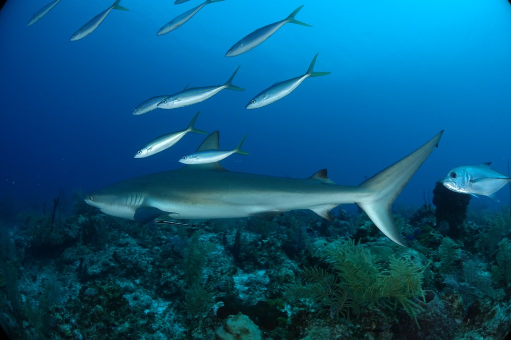 Tiger shark on the surface. Dolphins on the return home. A whole load of Caribbean reef sharks , yellow stripe snapper and nurse sharks.