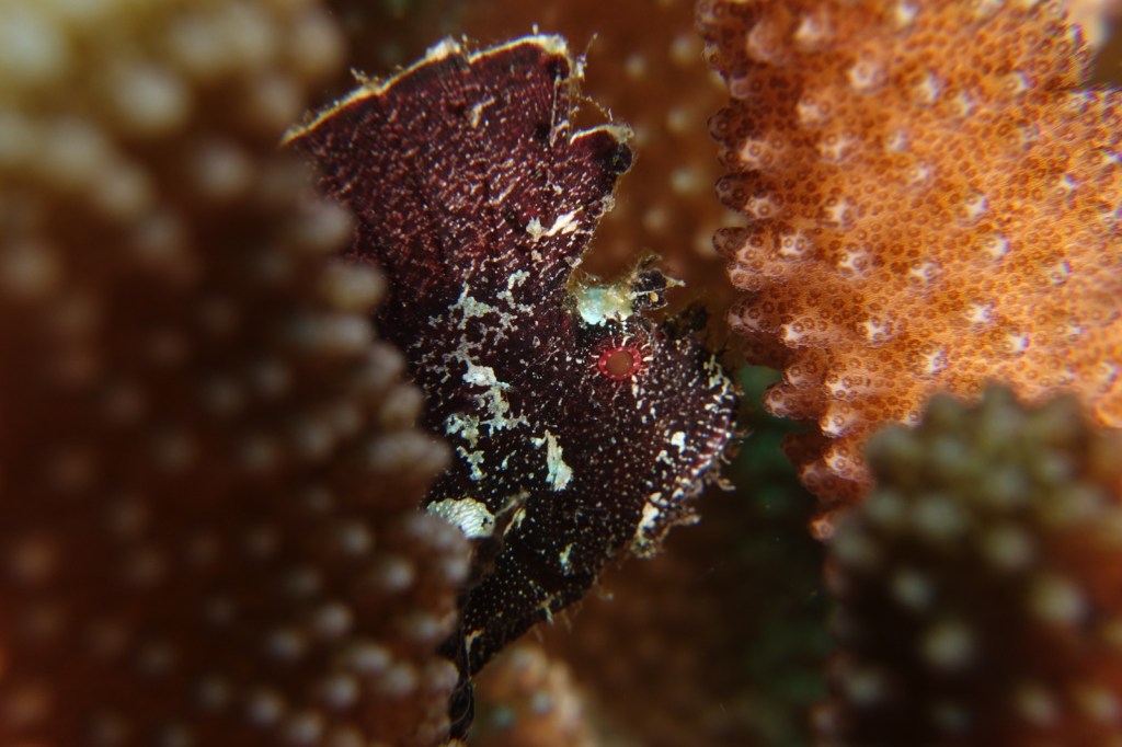Lots of frog fish, large schools of snapper, nudibranches, scorpion fish, leaf scorpion fish….