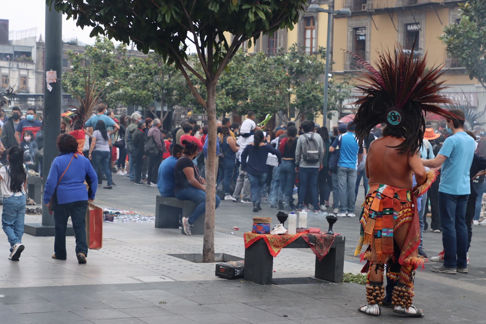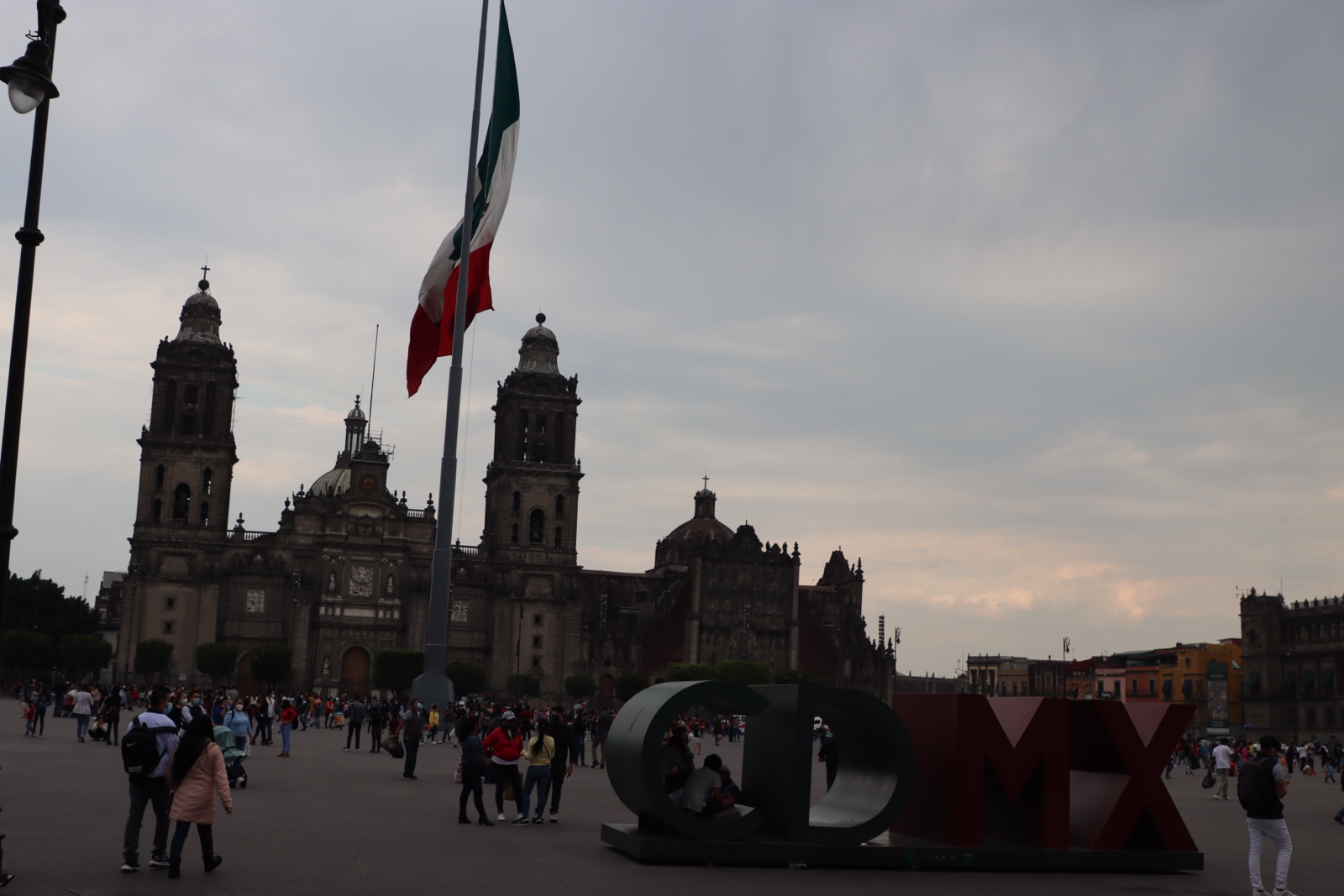 The main square, Plaza de la Constitucion, dominated by the Cathedral, which started construction in 1571 on top of Aztec ruins after the Spanish conquest. It was busy, full of Sunday shoppers, worshipers and people coming for a cleanse.