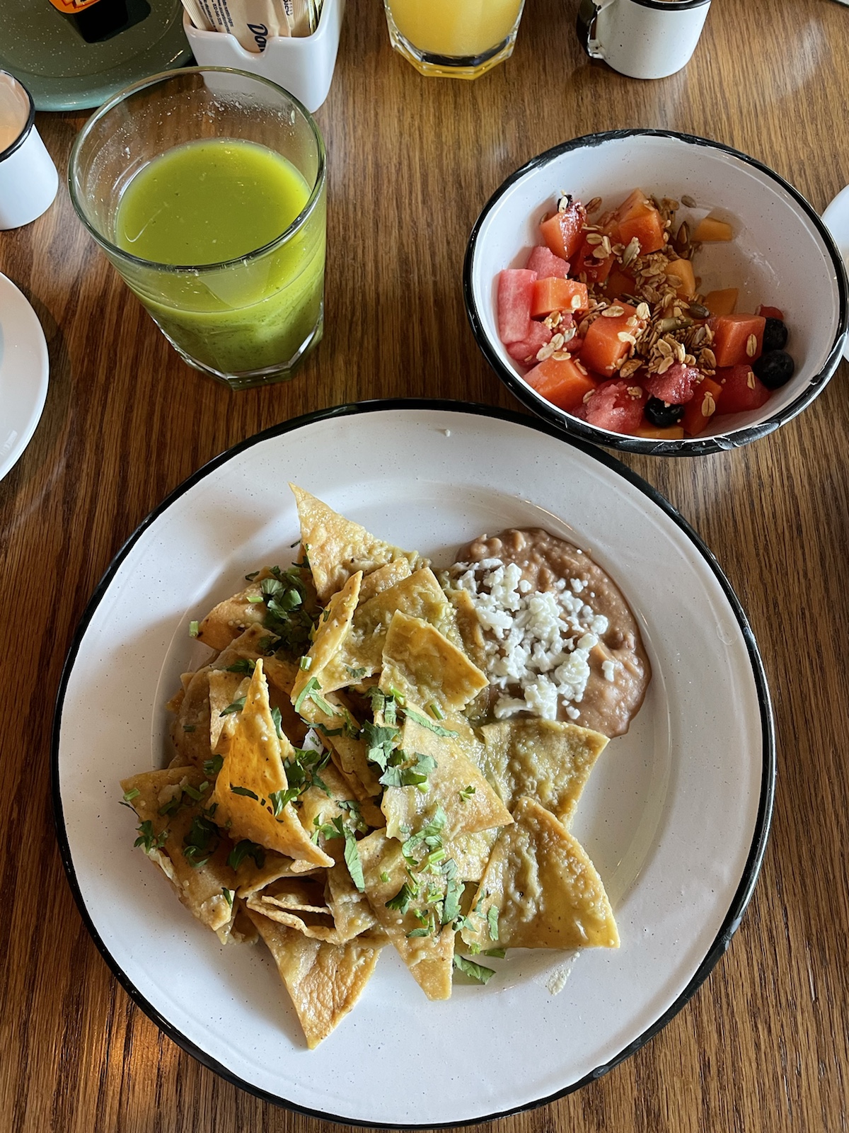 Corn chips make an appearance at every meal. Chilaquiles. Breakfast corn chips cooked with salsa verde.