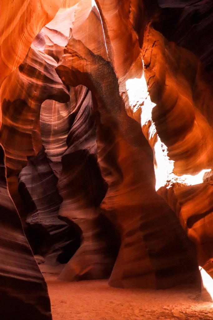 Which once you walk into it, turns into a wonderland of shades of orange, flickering light and waterfalls of sand pouring down onto you.
